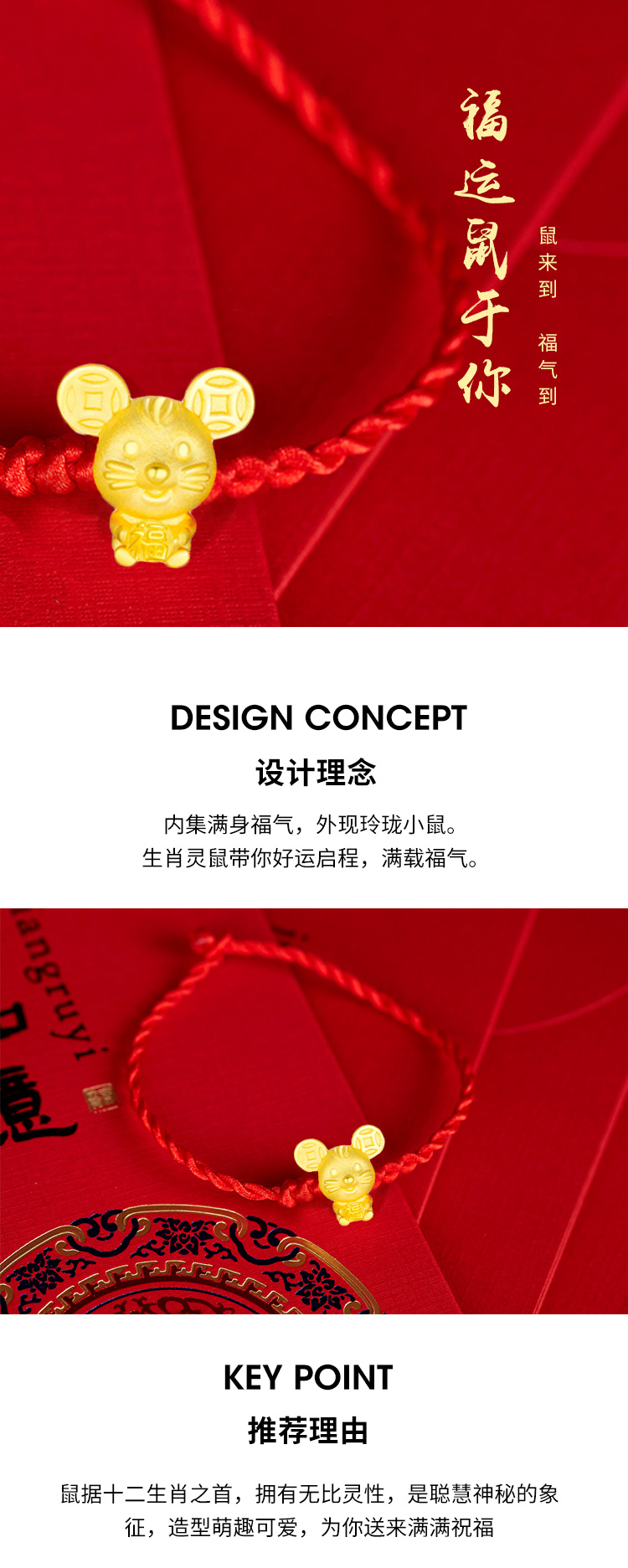 鼠据十二生肖之首,拥有无比灵性,是聪慧神秘的象征,造型萌趣可爱,为你送来满满祝福。