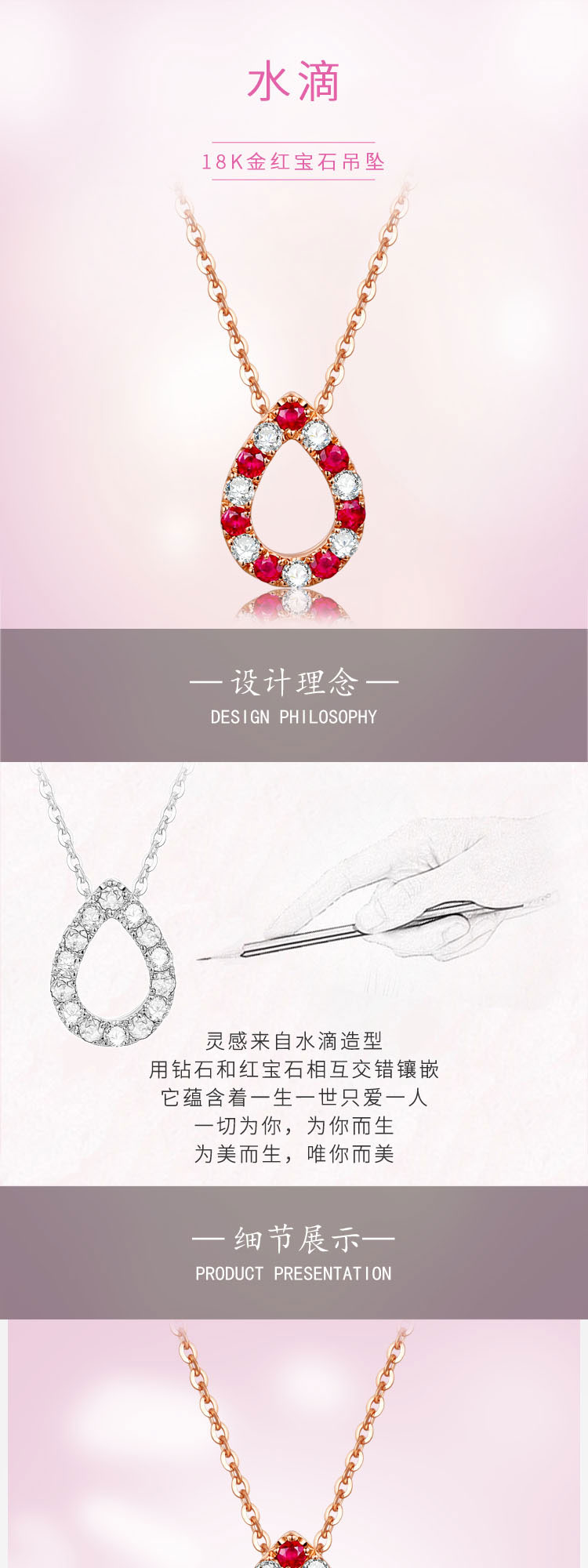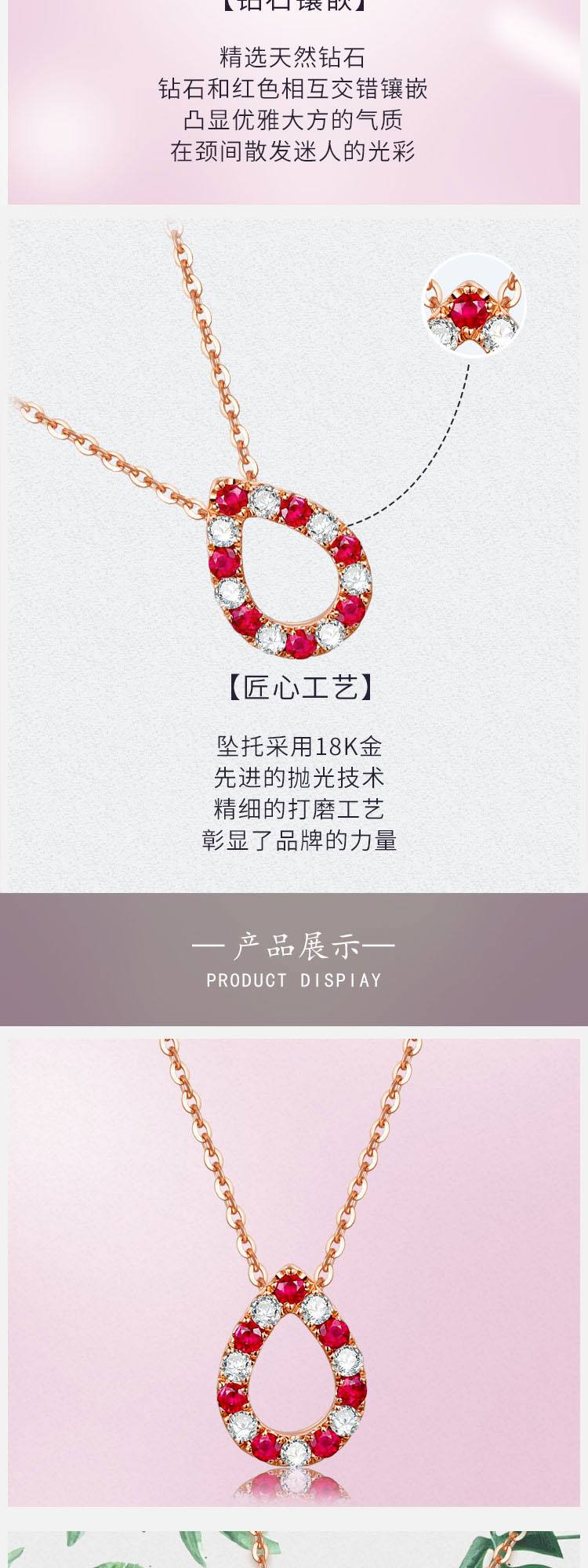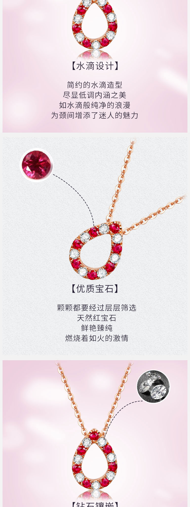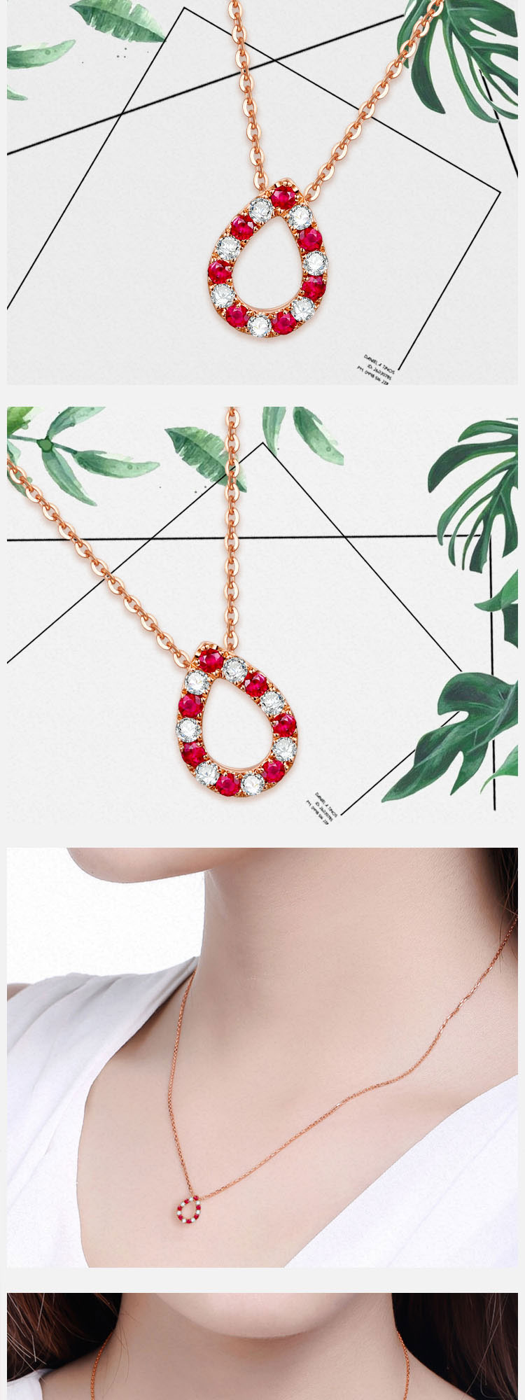 • 【水滴】玫瑰18K金时尚红宝石钻石项链
